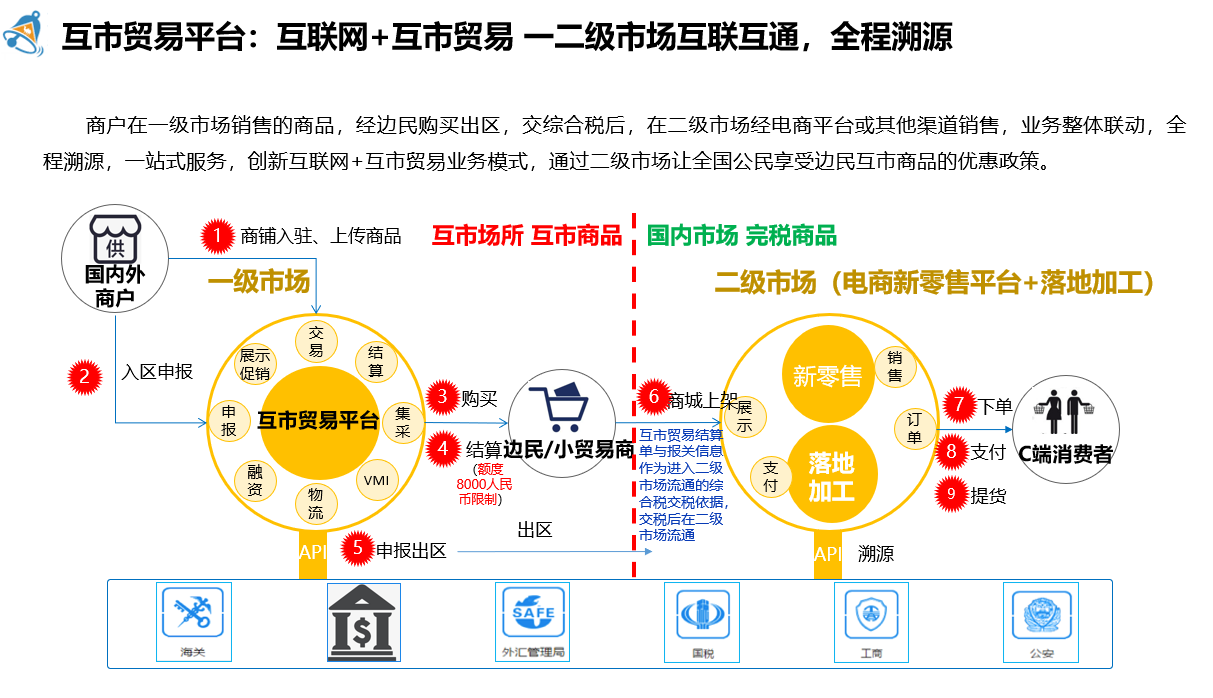 值得一提的是,關(guān)于邊民互市貿(mào)易平臺(tái)的搭建,也可使用4PNT四方網(wǎng)絡(luò)邊民互市貿(mào)易平臺(tái)系統(tǒng)實(shí)現(xiàn)互聯(lián)網(wǎng)+邊民互市貿(mào)易創(chuàng)新模式,實(shí)現(xiàn)一二級(jí)市場(chǎng)聯(lián)動(dòng),通過(guò)云倉(cāng)管理系統(tǒng)規(guī)范貿(mào)易監(jiān)管,結(jié)合新零售和電商平臺(tái)擴(kuò)大商品銷售渠道,并完善跨境結(jié)算體系以及通過(guò)數(shù)據(jù)集采實(shí)現(xiàn)商品全程可溯源等功能,可提供互市貿(mào)易交易、海關(guān)監(jiān)管和物流服務(wù),建立一個(gè)互市貿(mào)易與通關(guān)一體化“窗口式”服務(wù)系統(tǒng)。